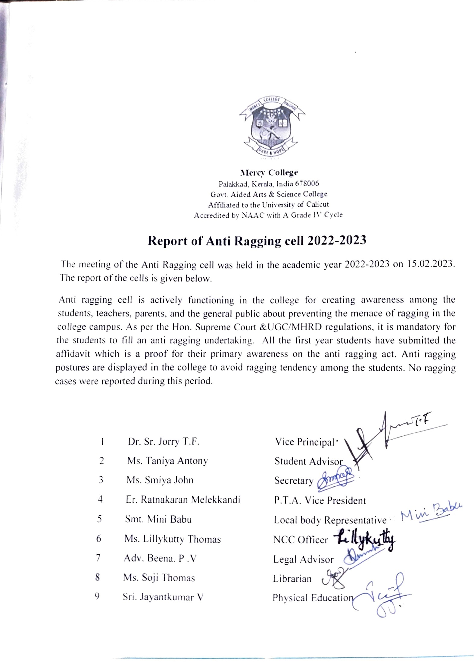 Report Anti Ragging 2022-23