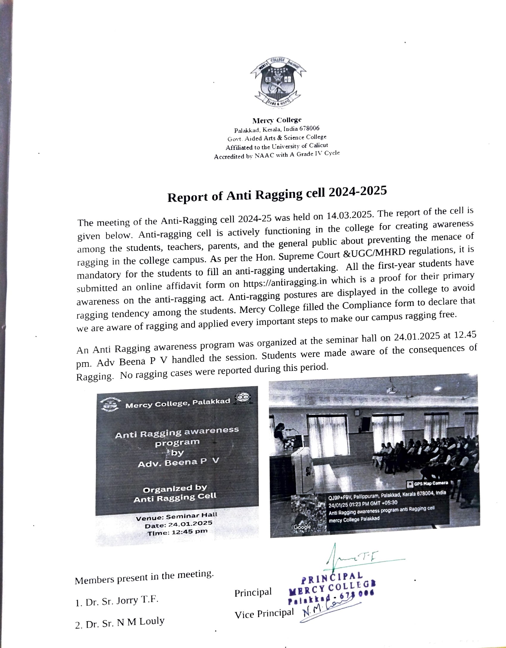 Anti Ragging cell report 2024-25